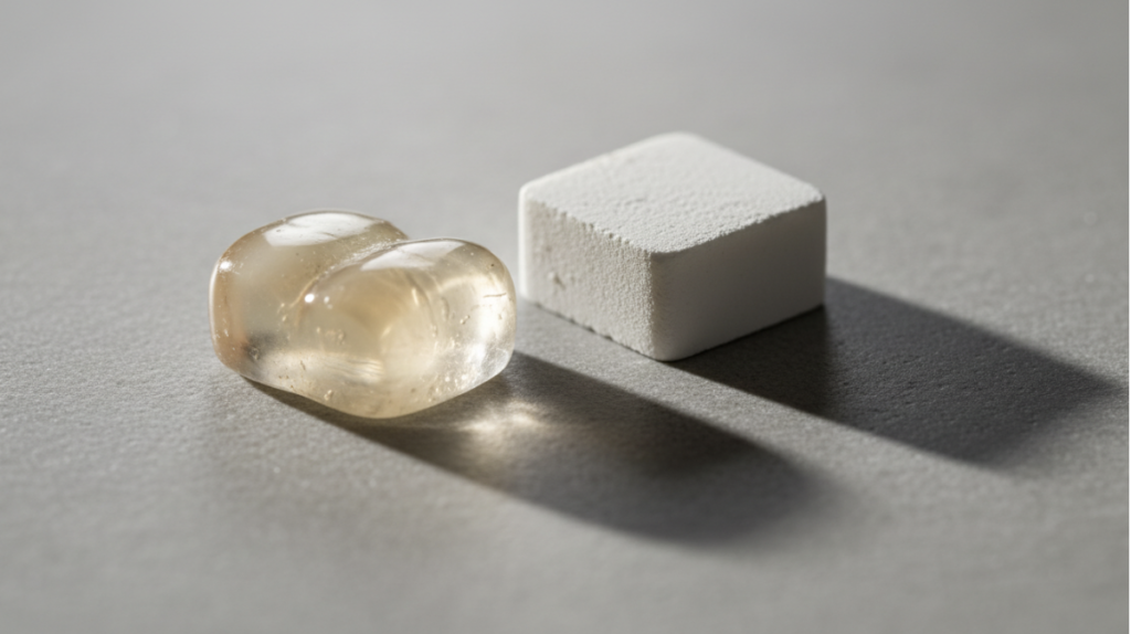 金属を使用しないので金属アレルギーの心配がなく、プラスチック製と比較すると色が変わりにくく、天然歯に近い透明感があります。しかし、自由診療のセラミックと比較すると強い歯ぎしりなどに弱く、すり減りやすく割れやすい点や、プラスチック製の樹脂も配合されている為、長期間使用していると少しずつ透明感がなくなる点がデメリットです。