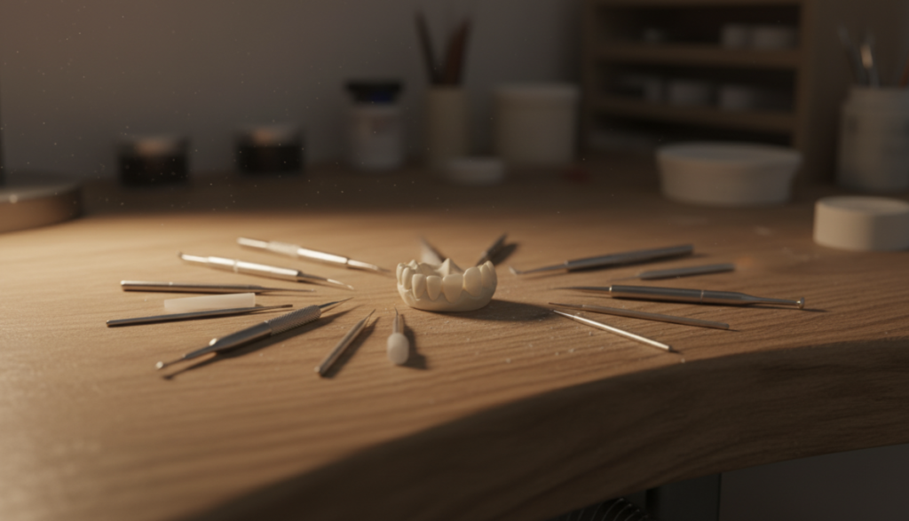 当院では院内に歯科技工士が在籍しており、患者様一人ひとりの歯の色・形・噛み合わせに合わせた補綴物を作製しています。精度の高い補綴治療により、見た目だけでなく噛みやすさや長期安定性にも配慮した治療をご提供しています。