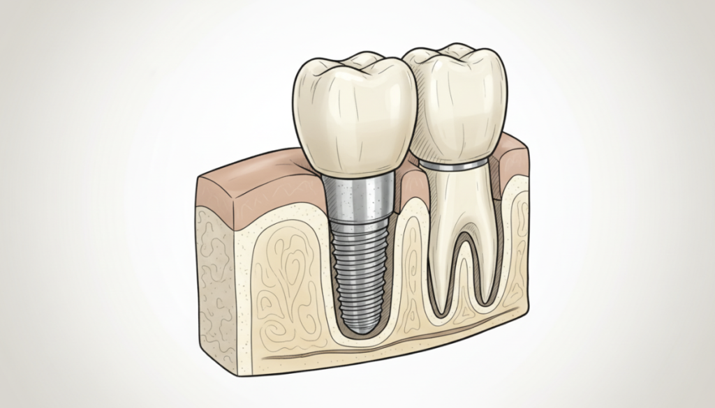 外科手術が必要になるため、身体的な負担は避けられません。しかし、隣の健康な歯を削る必要がない点は、長期的な口腔健康を守るうえで大きなメリットです。